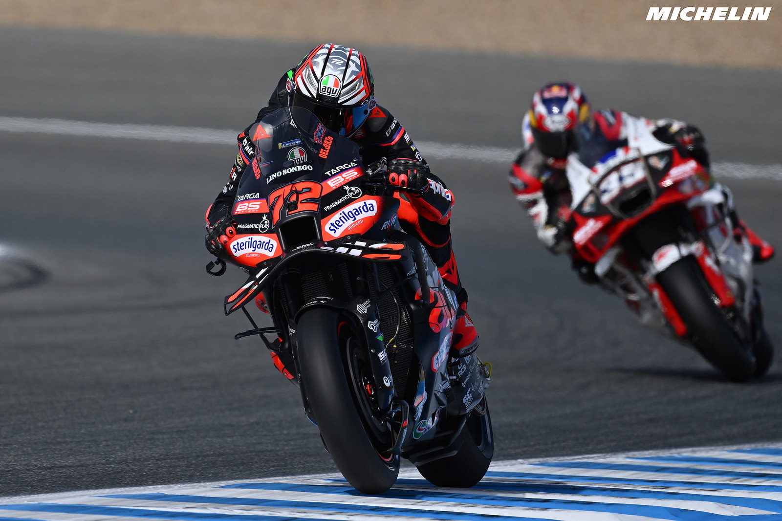 O italiano explicou como decorreu a sua prova, lutando inicialmente com Joan Mir: ‘Fiz um bom arranque, lutei com o Mir e depois tentei seguir o Maverick [Viñales]. Consegui aproximar-me, mas não o suficiente para ultrapassar.’