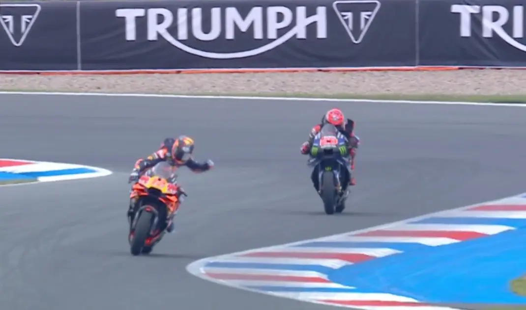 Maverick Viñales revelou hoje porque deu um polegar para cima a Fabio Quartararo na volta de reconhecimento da Sprint do GP da Holanda, num gesto de apoio ao seu antigo companheiro de equipa da Yamaha na esperança de contrariar o domínio da Ducati.