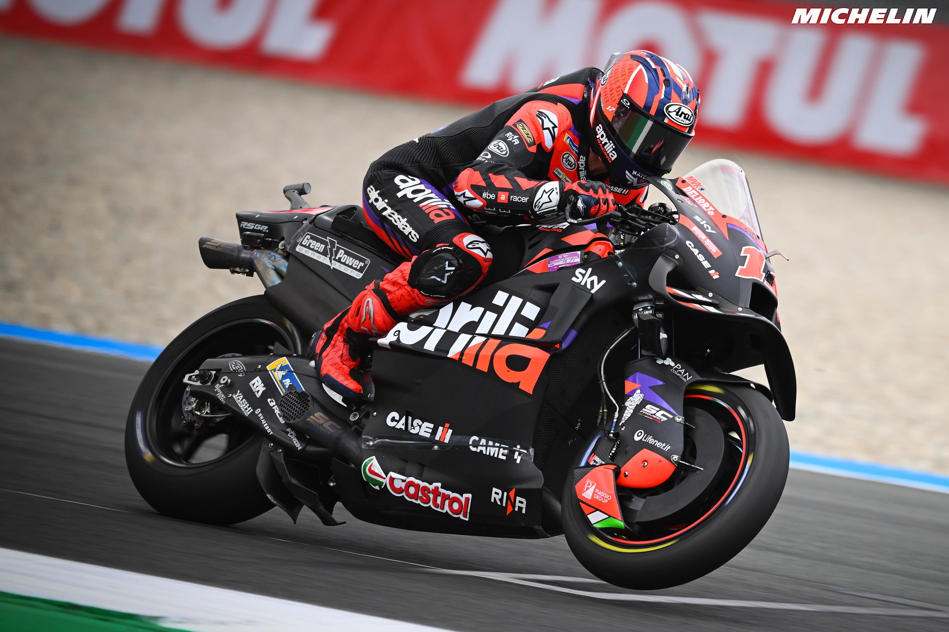 De olho nas Ducati, piloto que em 2025 irá rumar à GASGAS Tech3 disse: ‘É difícil comparar as motos [A Aprilia com a Ducati], são muito diferentes. Nós temos algumas virtudes, eles têm outras, por isso não consigo dizer onde são mais fortes para ser sincero’.