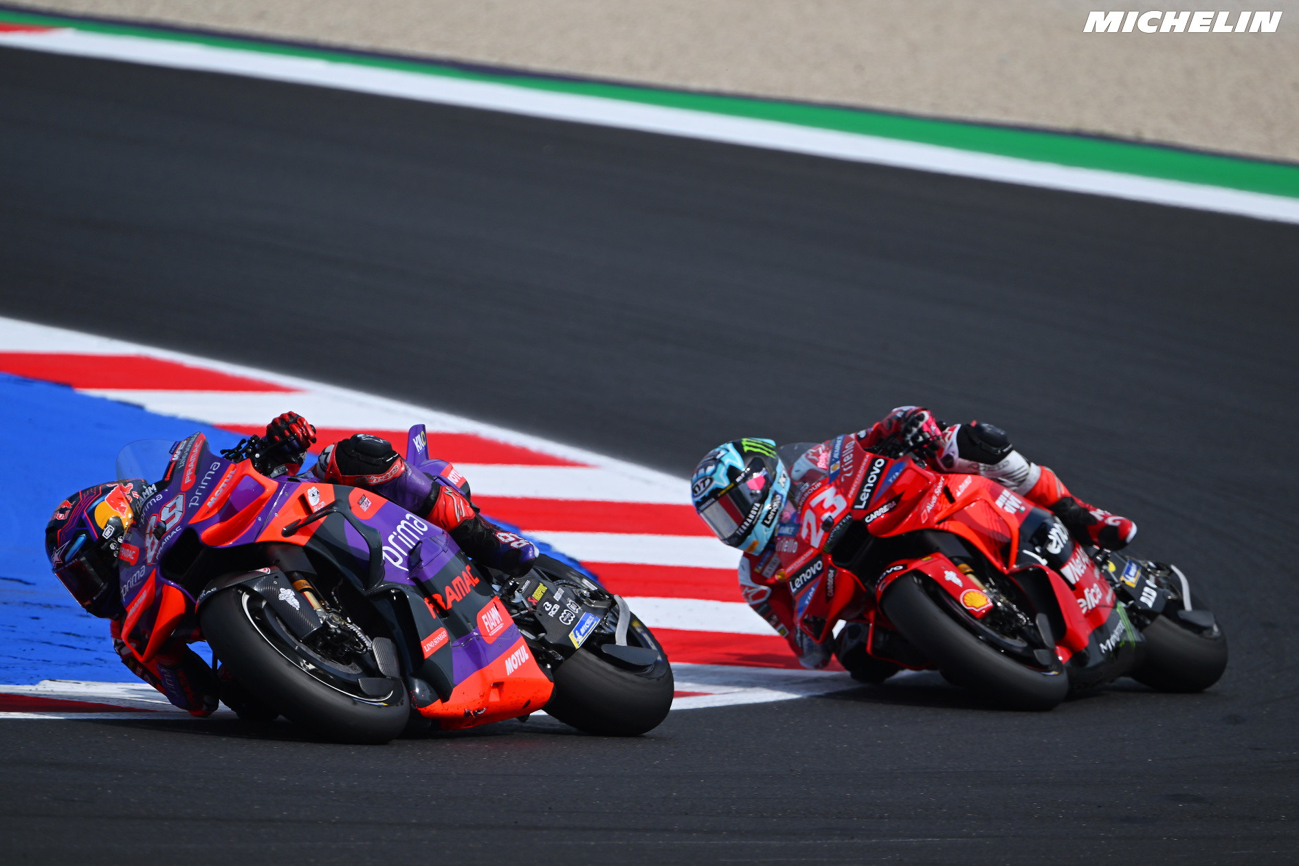 Um dos momentos de maior polémica aconteceu durante a última curva em Misano, com Enea Bastianini a forçar a ultrapassagem a Jorge Martín e com muitos a questionarem se o italiano deveria de ser penalizado, algo que não aconteceu, e Miguel Oliveira tem uma opinião muito própria sobre o tema, apontando para as regras que ‘são claras’ mas também a considerar que o #23 foi muito inteligente para ter a manobra naquela zona específica.