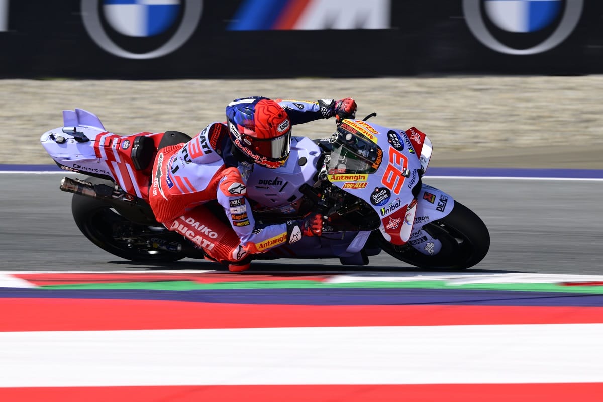 Marc Márquez esteve entre os mais velozes de sexta-feira no GP da Áustria de MotoGP. O piloto da Gresini, que até chegou a liderar o treino desta tarde perto do fim, ficou em quarto a 0,350s do líder Francesco Bagnaia (Ducati).