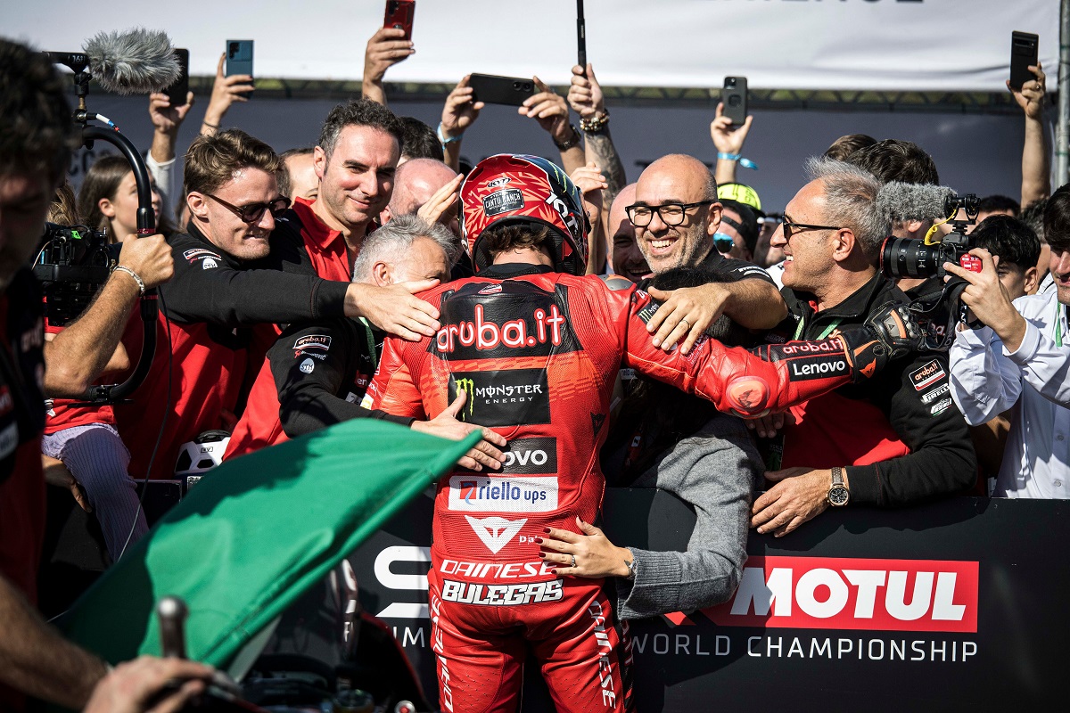 A Superpole Race ofereceu um espetáculo único, com Bulega a vencer Toprak Razgatlioglu (BMW) por apenas 3 milésimos de segundo, o menor intervalo registado na história da competição: ‘Estou muito contente com o resultado deste domingo. Em particular, sinto que a Superpole desta manhã foi uma das melhores corridas da minha carreira, não só desta temporada’.