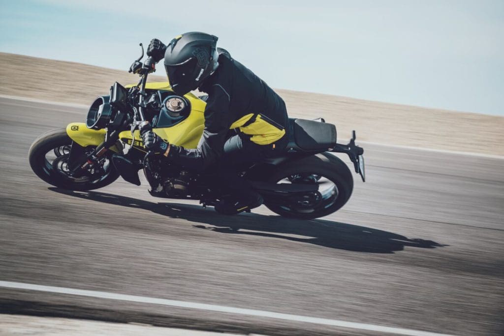 A Husqvarna optou por um estilo inspirado nas roadster, com uma carenagem a envolver de forma apertada o motor e o quadro, concebida também para ligar o corpo do condutor à moto de forma ergonómica. A decoração pode ser em cinzento ou amarelo.