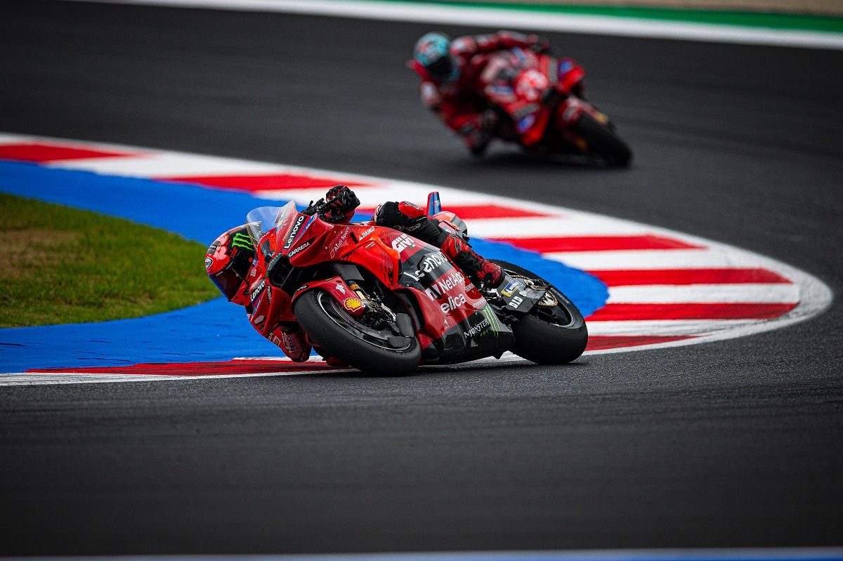 Apesar de ser visto como o favorito antes do fim de semana, Francesco Bagnaia deixa Misano sem qualquer vitória no GP de San Marino. Este domingo, liderou a corrida durante muito tempo, mas acabou por não conseguir suster Marc Márquez (Gresini/Ducati) quando alguns chuviscos tornaram as condições mais desafiadoras, e favoráveis ao espanhol.