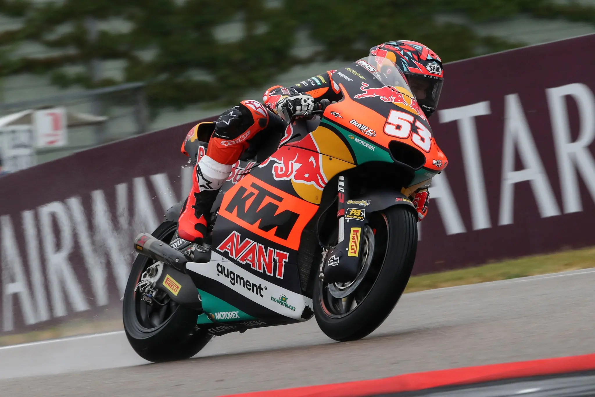 Numa corrida marca por uma série de quedas por força de erros de pilotos foi com bandeira vermelha que fechou o duelo pela vitória nas Moto2 após uma queda que envolveu Marcos Ramirez e Albert Arenas ter obrigado à reparação de uma secção do ‘airfence’ quando já estavam cumpridos mais de dois terços de corrida.