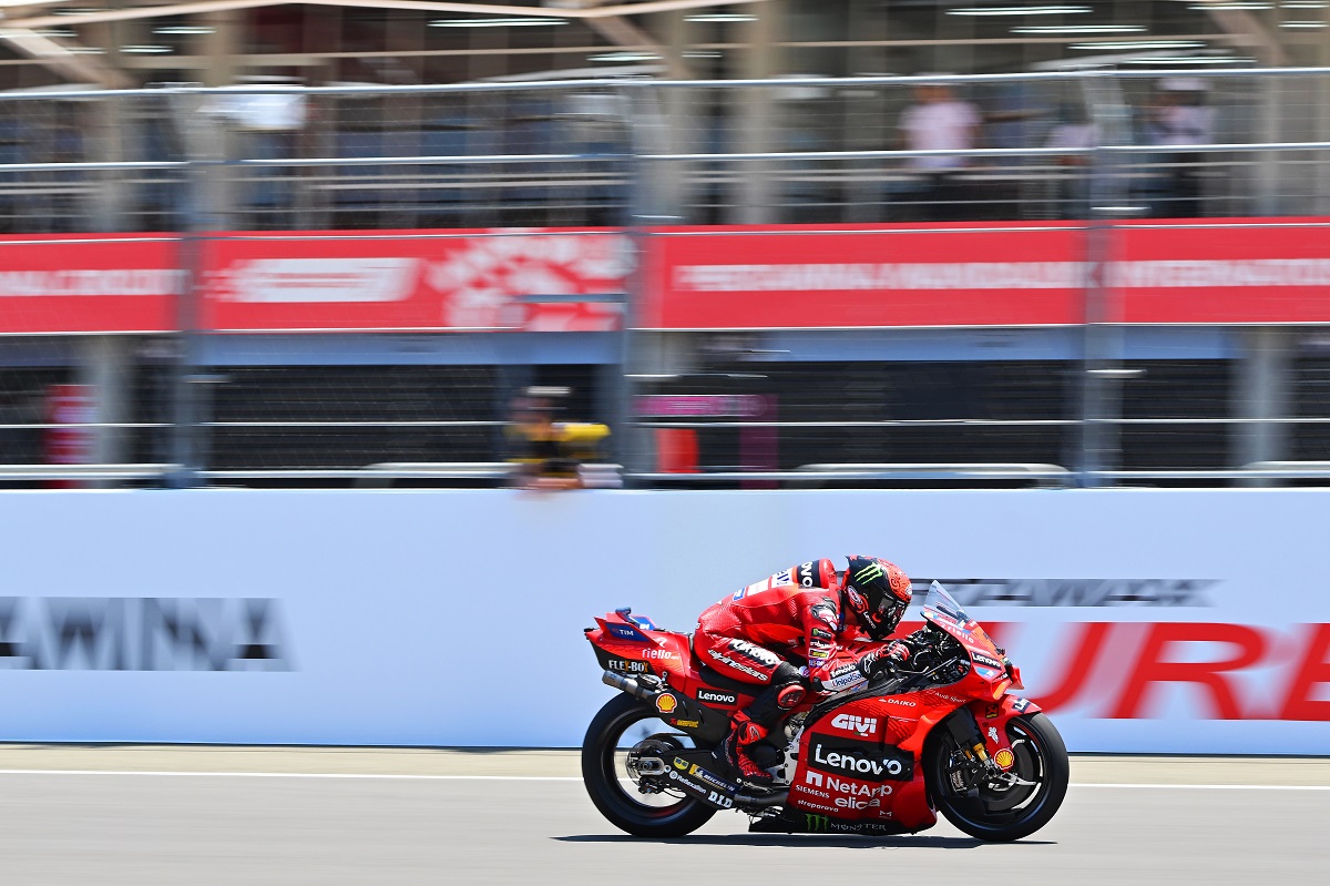 Francesco Bagnaia foi o terceiro classificado do GP da Indonésia de MotoGP, cujo vencedor foi o seu grande rival na luta pelo título, Jorge Martín (Prima Pramac/Ducati). Agora, estão separados por 21 pontos no campeonato, com vantagem para o espanhol.