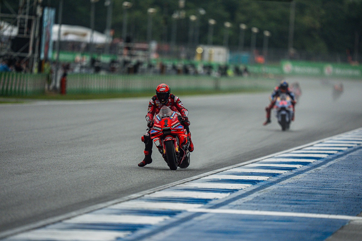– Eu não pensei que fosse perigoso. Mas eu estava muito forte nesses pontos de travagem. Eu estava a ouvir que ele se estava a aproximar aí, porque depois do risco que o Jorge [Martín] correu na volta 1 ou volta 2 na curva 11 a perder a traseira, eu disse: «Preciso de ter cuidado, entrar ali com mais calma». E eu estava a ouvir que o Marc estava a ganhar um bocado aí, por isso o meu objetivo era travar o mais forte possível na curva 12 para não lhe dar uma grande hipótese de ultrapassar.