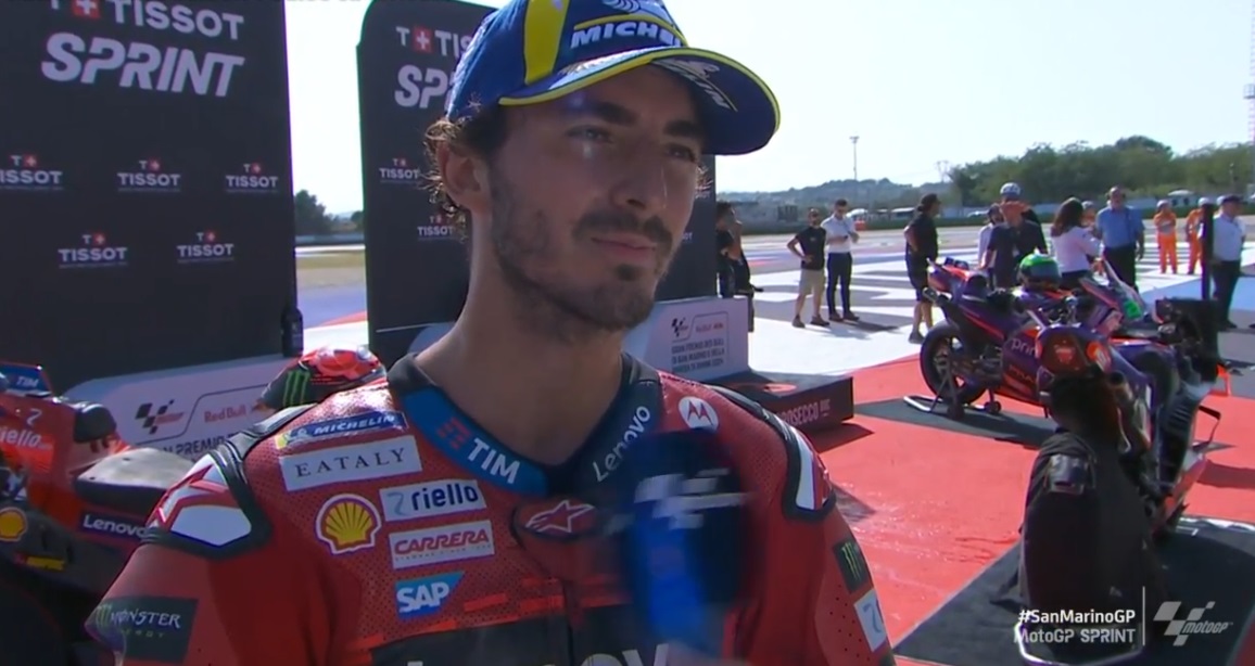 Foi um Pecco Bagnaia claramente frustrado aquele que surgiu no parque fechado em Misano, ele que tinha conseguido a pole position (com record) mas foi ultrapassado por Jorge Martín ainda na primeira volta.