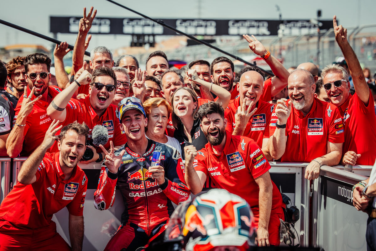 O Team Manager da equipa estava muito feliz com a forma como as coisas decorreram: ‘Um fim-de-semana inesquecível com um duplo pódio de Pedro Acosta e o melhor GP da temporada também com uma posição na primeira linha da grelha. Estamos muito felizes por estar de volta onde queremos estar, e isso vem da decisão de voltar a uma configuração de moto mais antiga e funcionou bem’.
