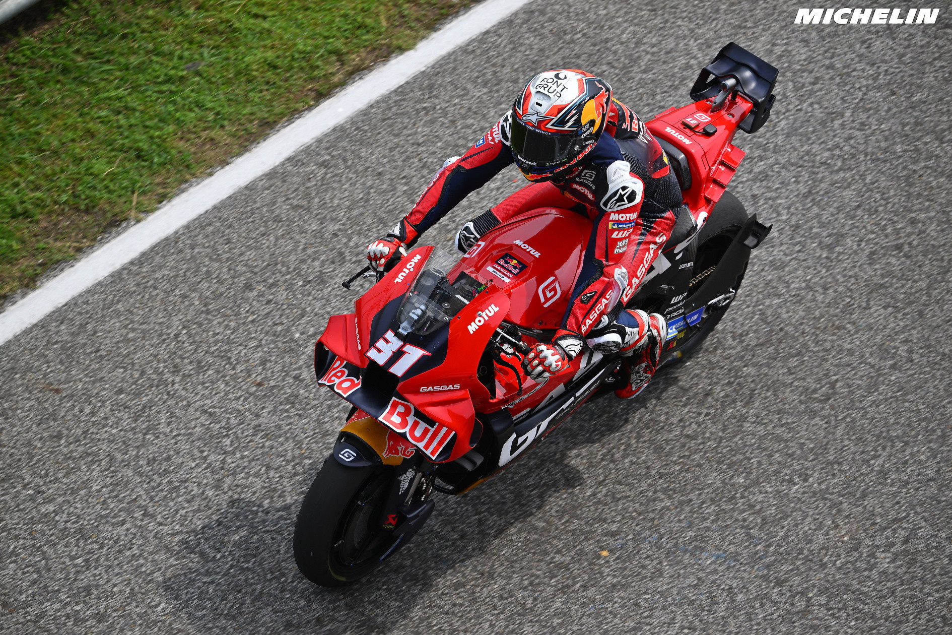 O piloto da GASGAS Tech3 explicou o que levou a que caísse: ‘Fizemos uma pequena alteração num componente da moto e tive muitas dificuldades para travar. Estava um pouco fora da linha e ligeiramente de lado quando a roda traseira empurrou a dianteira. Mas precisamos olhar para os pontos positivos e pensar em amanhã’.