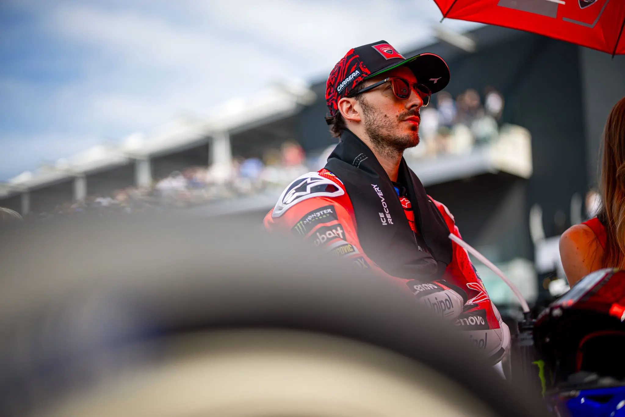 Depois de uma sexta-feira encorajadora, o italiano da Ducati afundou-se no sábado. Primeiro, com uma qualificação dececionante em oitavo lugar. Depois, na corrida Sprint, caiu para 13.º, terminando fora dos pontos e oficialmente eliminado da luta pelo campeonato — um cenário que deixou adeptos e especialistas incrédulos.