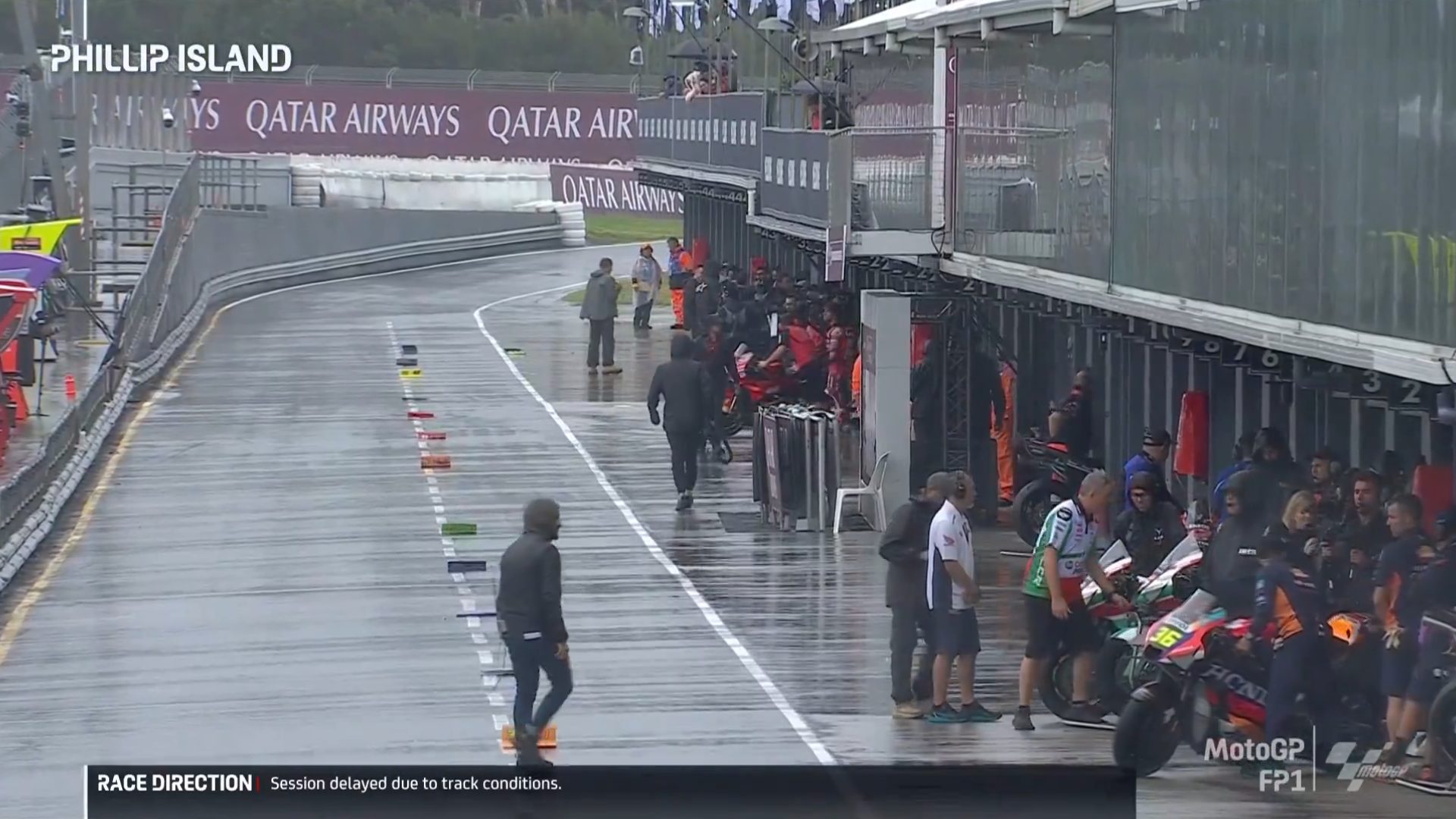 Está a ser um primeiro dia de trabalhos verdadeiramente complicado em Phillip Island e a primeira sessão de treinos livres da principal categoria foi uma vez mais adiada.
