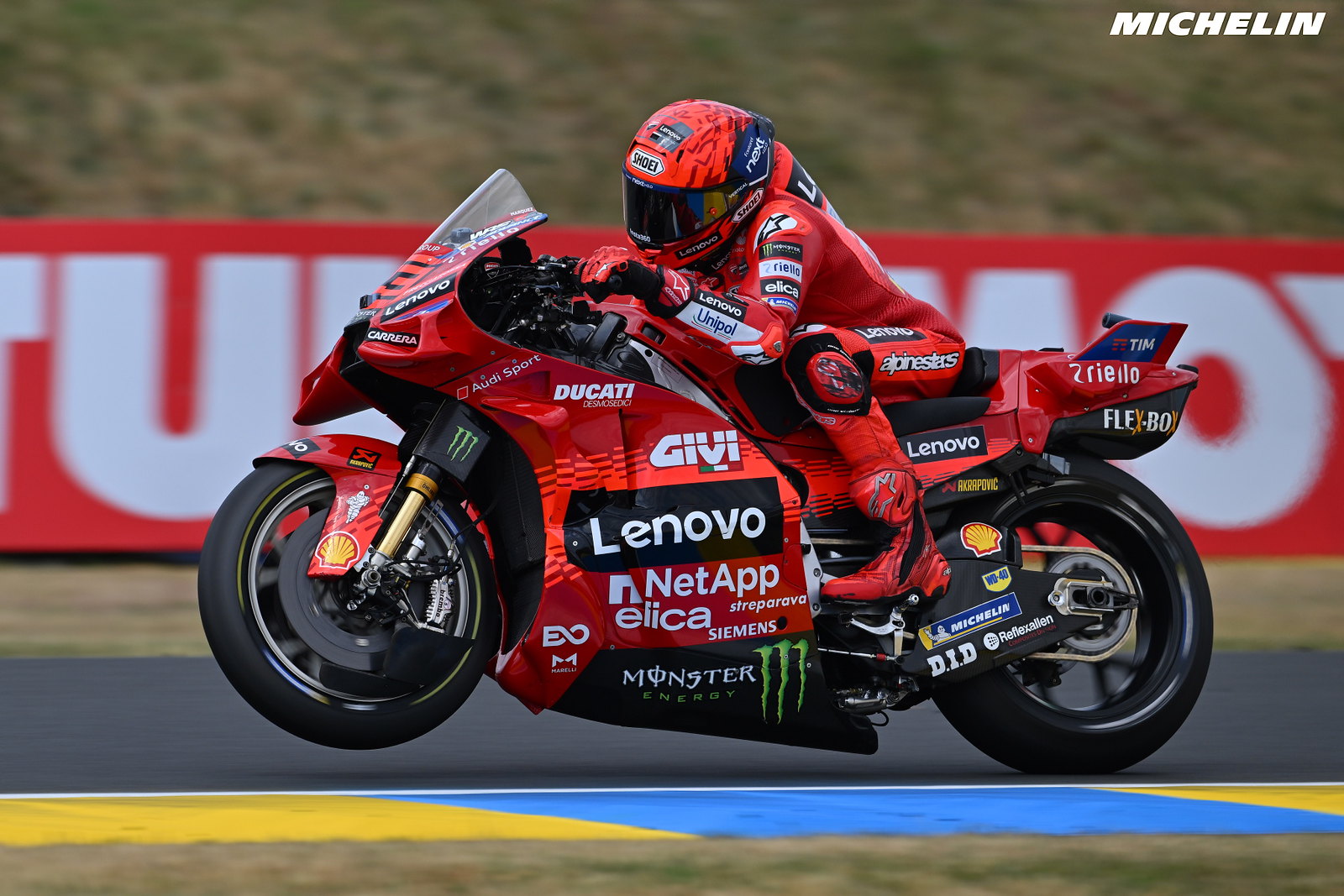 Marc Márquez analisa as condições para a corrida principal do GP de França, após vencer a Sprint em Le Mans. O piloto espanhol da Ducati Lenovo Team, vencedor da prova de sábado, partilhou as suas preocupações relativamente ao comportamento dos pneus face às condições meteorológicas previstas para domingo.