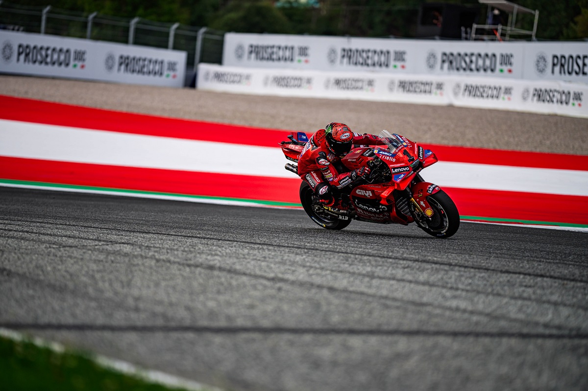 Francesco Bagnaia conseguiu no passado domingo a vitória no GP da Áustria de MotoGP, mas a corrida não deixou de ter os desafios – como por exemplo o pneu traseiro fornecido para o Red Bull Ring, dando mais patinagem do pneu.