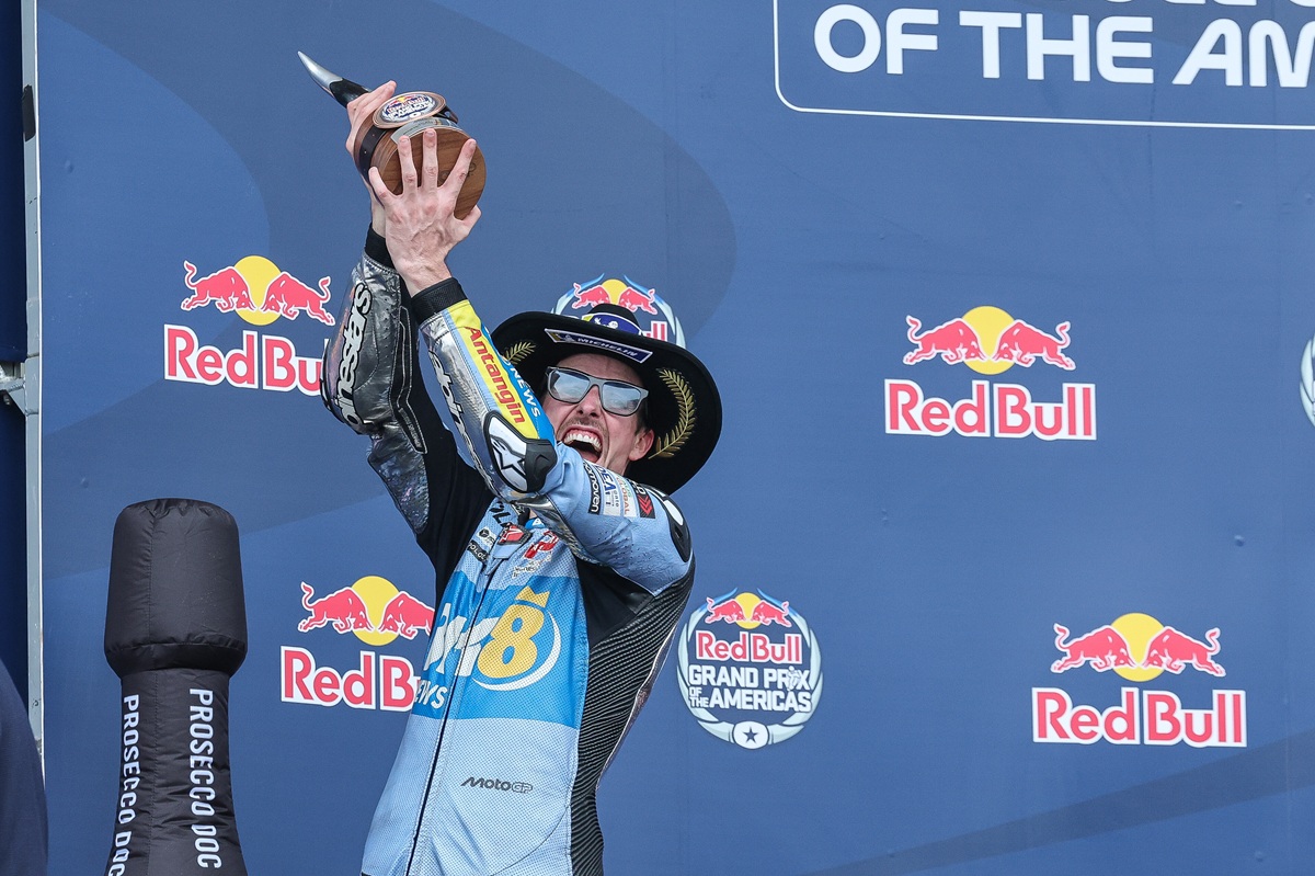Alex Marquez celebrates during Stop 3 of the MotoGP World Championship - Grand Prix of the Americas in Austin, TX, USA on March 30, 2025. // Gold & Goose / Red Bull Content Pool // SI202503300407 // Usage for editorial use only //