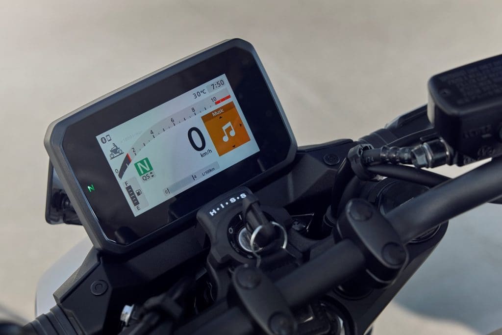 Há três modos de condução (Rain, Standard e Sport) e três modos de potência do motor, efeito do travão-motor e controlo de tração HSTC com controlo anti-cavalinho integral. Há ainda um moto personalizado User.