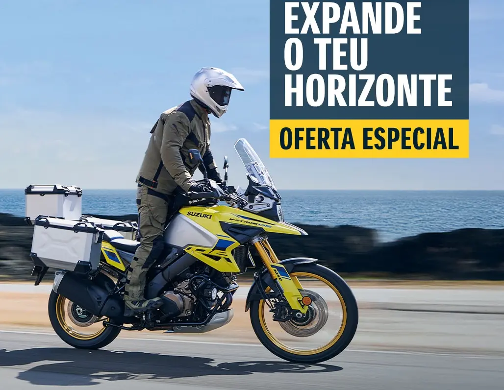 A Suzuki Portugal anunciou uma campanha promocional dirigida aos compradores das versões V-Strom 1050 e V-Strom 1050DE, oferecendo um desconto significativo no conjunto de bagagem oficial da motocicleta.