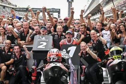 O GP da Catalunha de MotoGP de 2023 entrou para a história como o primeiro com uma dobradinha da Aprilia, ...