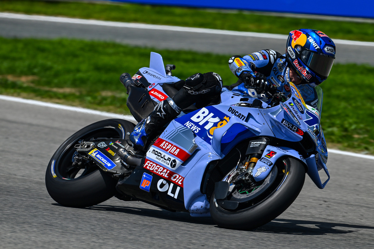 O piloto da Gresini acredita que há limitações técnicas difíceis de contornar: ‘Acho que é difícil, porque borracha é borracha. Quando tens algo muito quente à tua frente, como outra moto, aquece ainda mais. Se conseguirem fazer pneus que evitem um pouco mais esse problema, ótimo, mas não será fácil’.