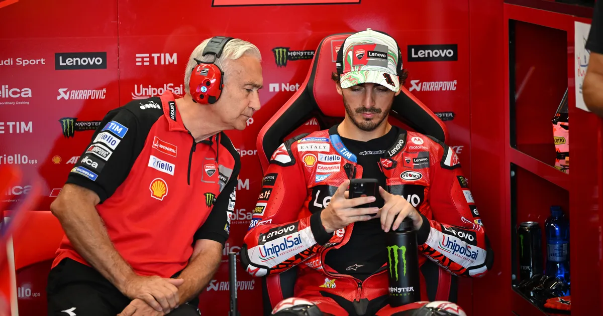 Mas nem tudo é cor-de-rosa em Borgo Panigale. Tardozzi reconheceu que as dificuldades de Bagnaia se tornaram na maior preocupação da Ducati.
