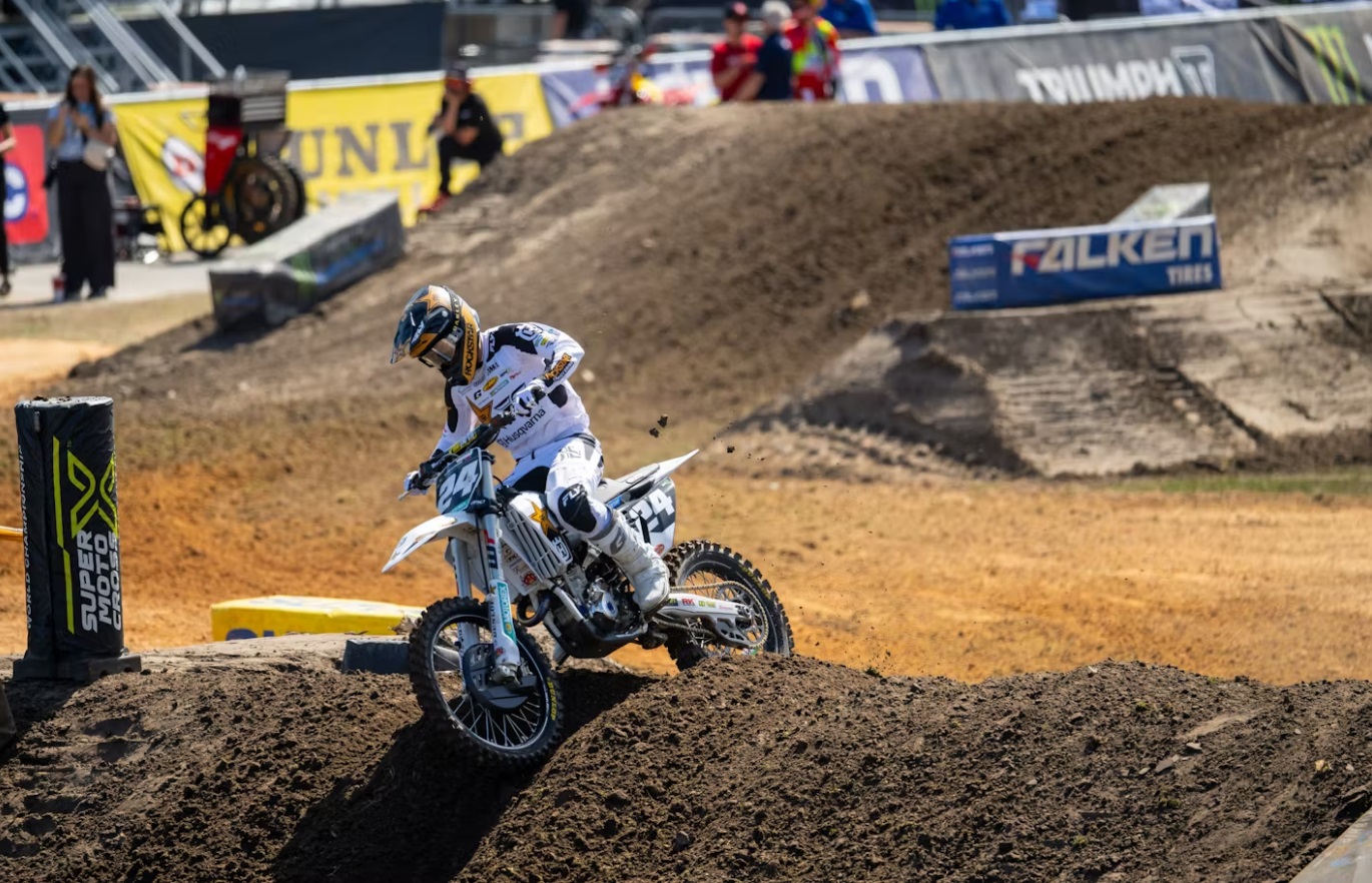 A mais recente etapa do AMA Supercross 250SX proporcionou aos adeptos da modalidade um espetáculo repleto de adrenalina e reviravoltas inesperadas. A corrida teve um arranque intenso, com Chance Hymas a parecer garantir o holeshot, mas Tom Vialle rapidamente assumiu a dianteira ao contornar a curva inicial. O francês envolveu-se num duelo direto com Max Anstie, que, ao tentar defender a sua posição, acabou por ser apanhado num dos blocos de proteção e caiu, relegando-o para o último lugar logo no início da prova.