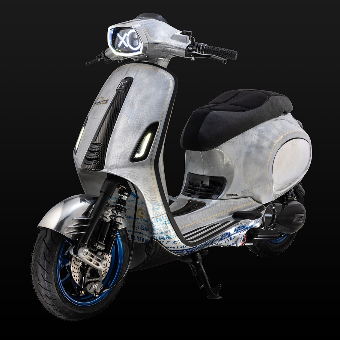 O quadro é da SIP, assim como o guiador, e a forquilha foi encurtada em 20 milímetros. Encontra-se um assento trabalhado em conjunto com a NISA em Itália, e foi aplicada tecnologia LED nas luzes.