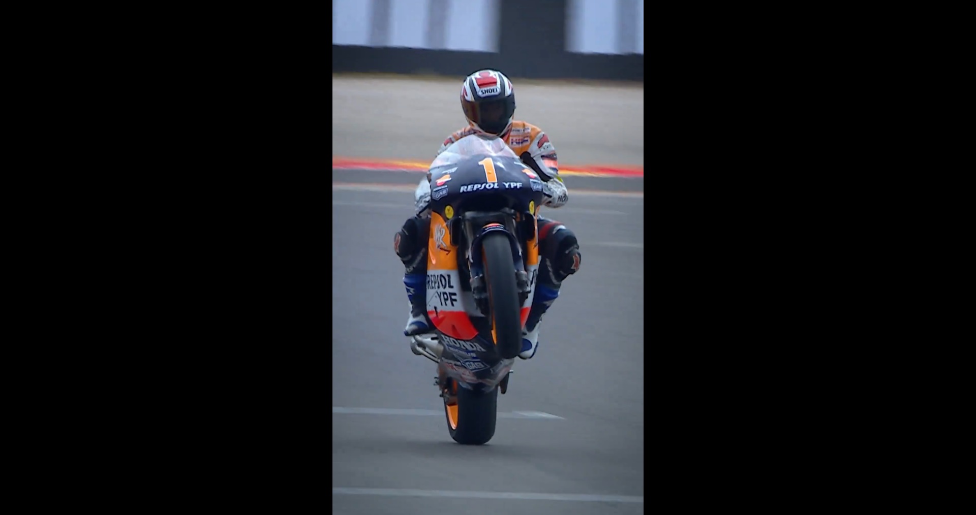 Ao comando da sua NSR500, o espanhol – atualmente com 54 anos – marcou presença em Aragão com a sua mítica moto e mostrou que quem sabe não esquece, presentando os espectadores presentes com um cavalinho.