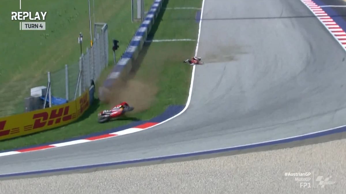 O primeiro treino livre do GP da Áustria de MotoGP foi interrompido a menos de quatro minutos do fim depois de uma queda forte de Pedro Acosta na curva quatro do Red Bull Ring.
