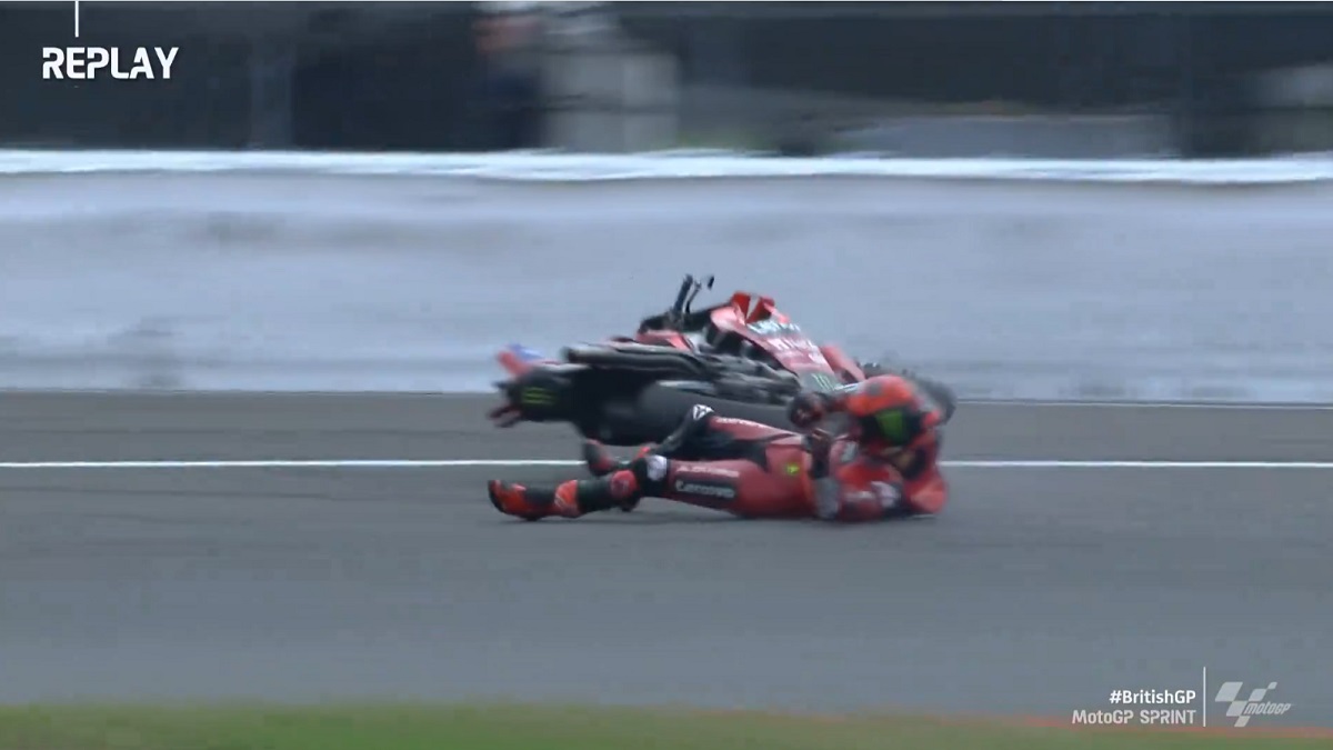 BAGNAIA BLUNDERS 🤯@PeccoBagnaia has crashed out just as he was beginning to close in! 💥#BritishGP 🇬🇧 pic.twitter.com/VXDWhyPmms