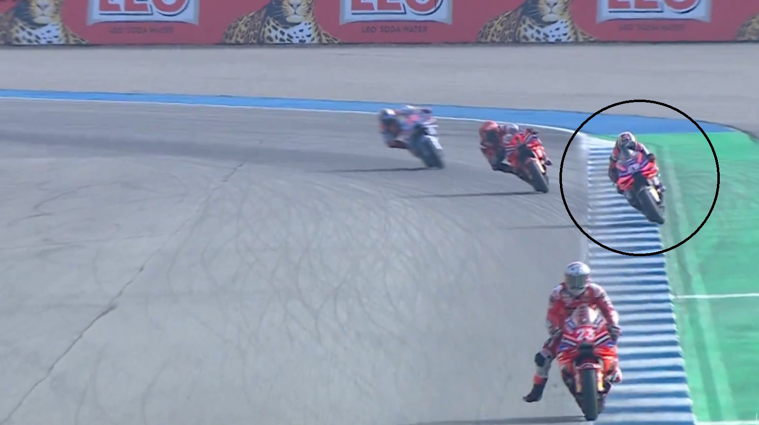 A polémica volta a estar bem viva no MotoGP e agora a envolver Jorge Martín, neste GP da Tailândia. Durante a Sprint, o piloto da Pramac Racing a quatro voltas do final da corrida parece ter excedido os limites de pista ao tocar na parte verde e, atendendo a que já tinha um aviso era de esperar – caso se confirme este excesso – uma sanção.