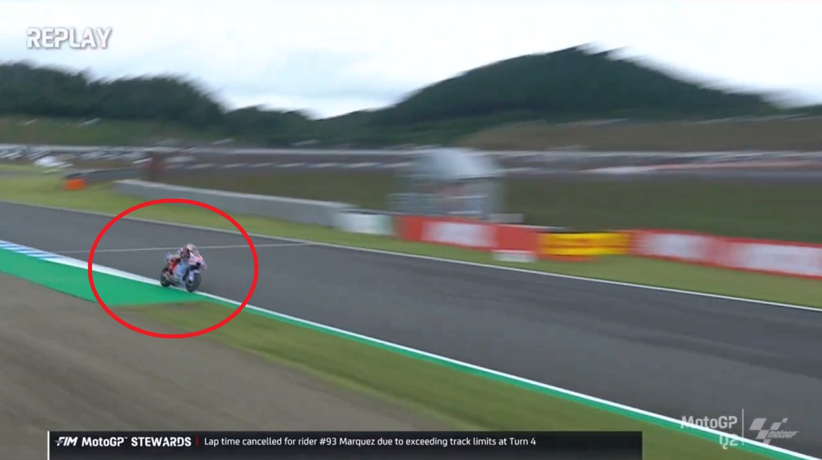 E as regras dizem que um piloto que tocar na parte verde, perde a volta em causa. Foi o que aconteceu com Márquez, que pisou ligeiramente a parte verde na saída da curva quatro e ficou sem a volta que viria a ser a sua melhor.