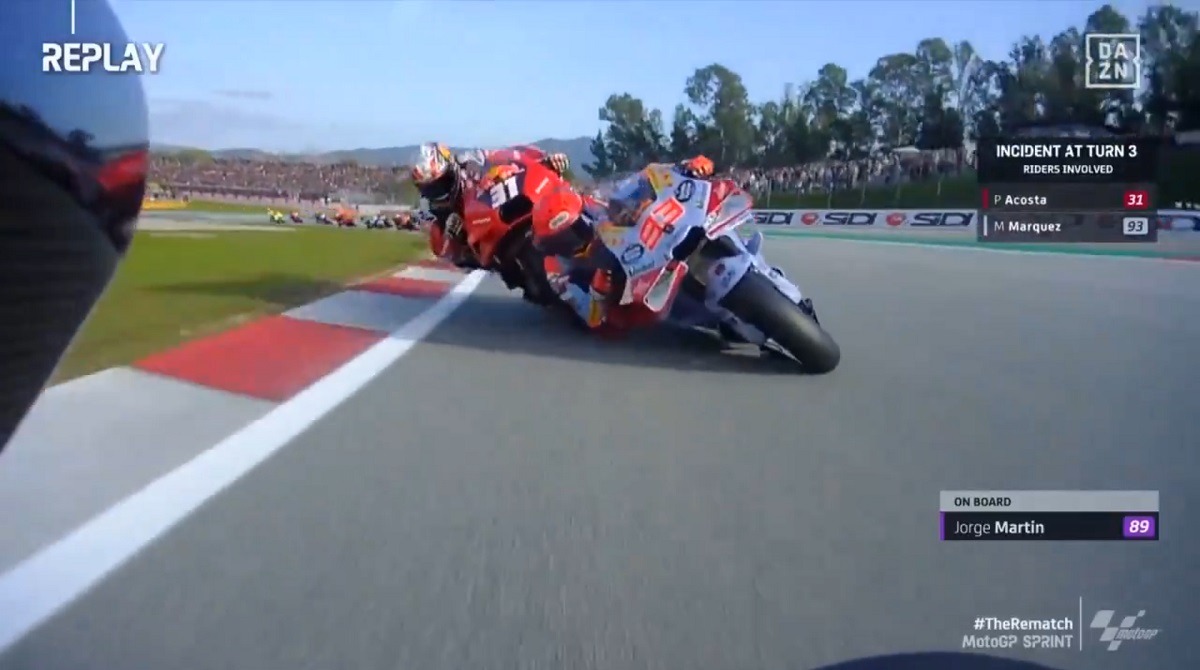 A primeira volta da corrida Sprint do GP Solidário de Barcelona de MotoGP ficou marcada por uma colisão entre Pedro Acosta e Marc Márquez – que comprometeu a prova de ambos.