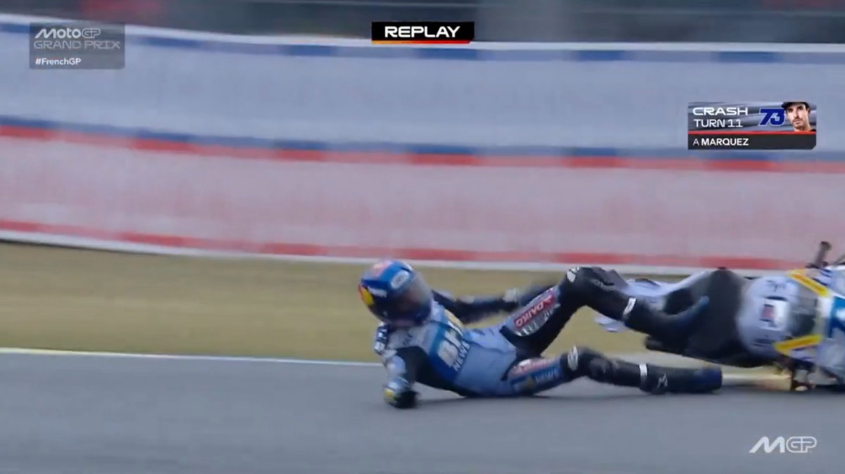 Álex Márquez ficou a zeros numa corrida principal nesta época de MotoGP pela primeira vez – ao abandonar o GP de França após duas quedas.