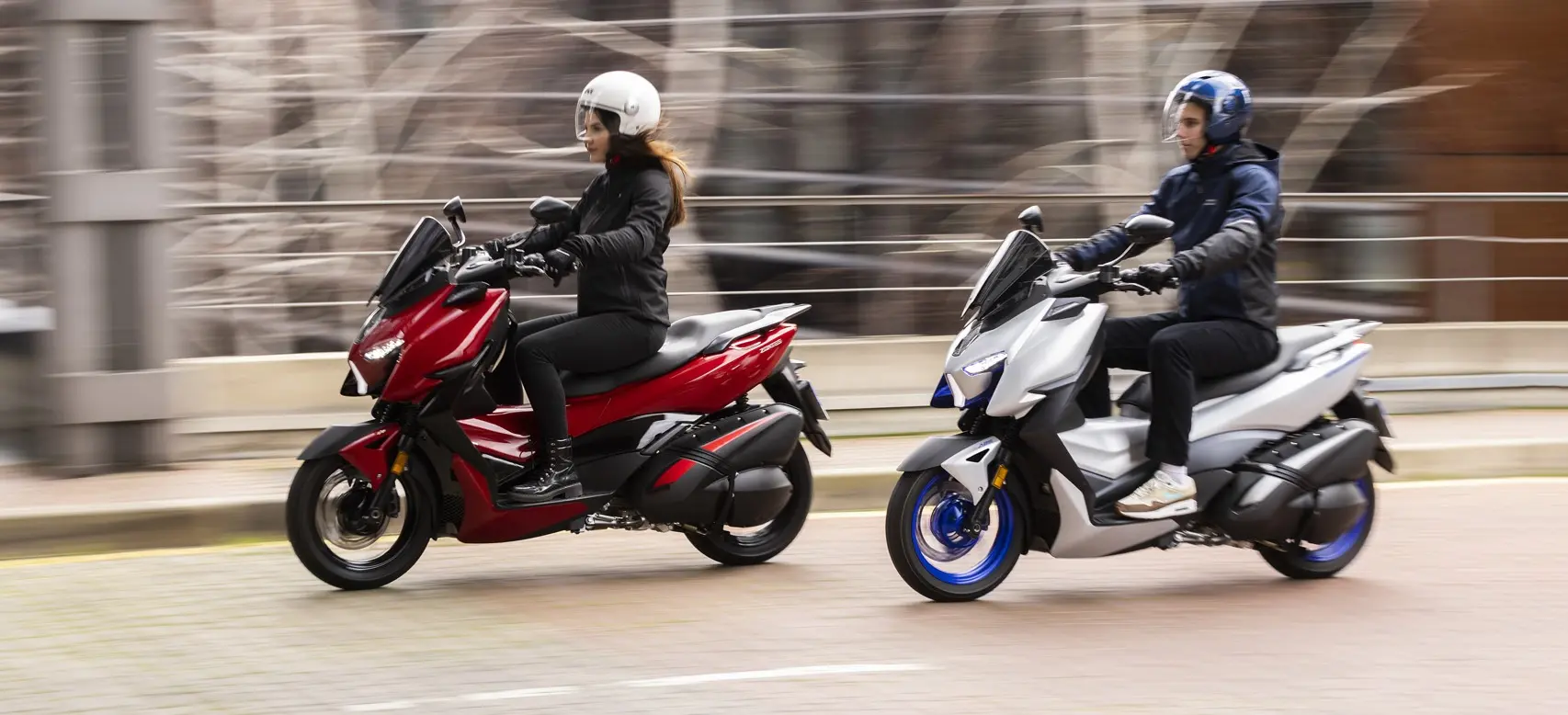 No plano tecnológico, a scooter aposta forte num ecrã TFT a cores de grandes dimensões, com quatro modos de visualização – Casual, Race, Street e Simple – adaptando a informação ao estilo de condução. A conectividade permite emparelhar o smartphone sem fios, visualizar chamadas recebidas e geri-las através dos comandos no guiador, desde que o condutor utilize intercomunicador Bluetooth no capacete. Soma-se ainda o sistema de chave inteligente PKE de última geração, que possibilita o arranque mesmo com a pilha do comando descarregada.